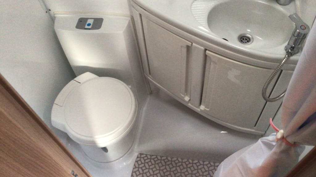 - Cassette toilet with wash basin and shower